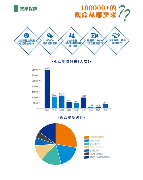 2023临沂门业博览会将进一步渠道下沉,周密规划路线,辐射更多的区域,扩大邀约范围。走进各地的各大装饰建材市场、家居商城、工业园区、产业基地,精准邀请门窗业经销商、代理商、装饰工程公司等多类专业观众到场参观采购!