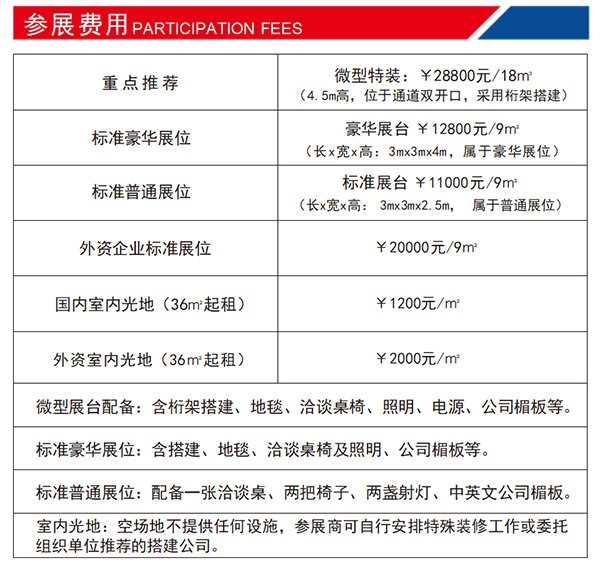 凡有意参加展览会的单位 ,请与组委会联络 ,待确定展位及参展费用后 ,填写展览会“参展 申请/协议表”并加盖公章 ,邮寄或传真至组委会。参展协议签妥后 ,参展单位应在3个工作日内 支付参展费用。