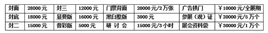 本届会刊用32开进口铜版纸(130mm×210mm),精装印刷,在大会期间派发给参观人士。欢迎企业刊登广告版面及其它宣传方式,收费标准如下(人民币)